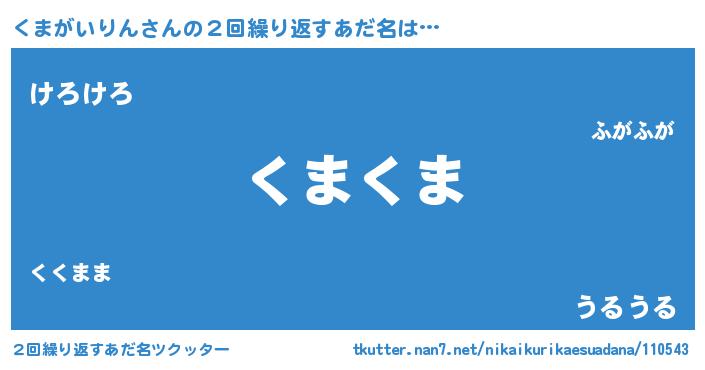 | ピコ太郎風あだ名 | 『クコ四郎』『ピコク郎』『クマ一郎』 |