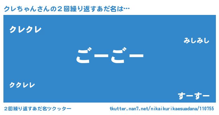 | 意味不明あだ名 | 『永久保存クレちゃん』『自称クレちゃん』 |