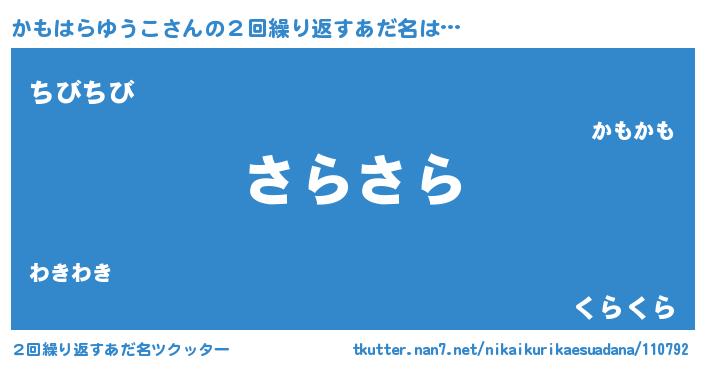 | ヘコむあだ名 | 『かもはらゆうこ(遠い目)』『かもっふぃ~』 |