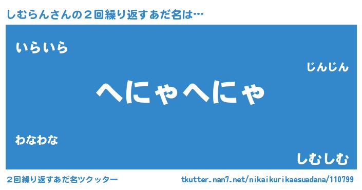 | ヘコむあだ名 | 『しむっちょ』『しむっふぃ~』 |