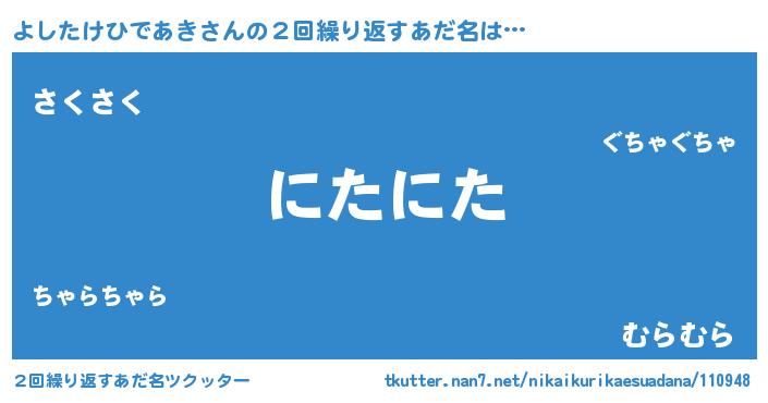 | 男性向けラノベタイトル風あだ名 | 『ダンジョンによしたけひであきを求めるのは間違っているだろうか』 |