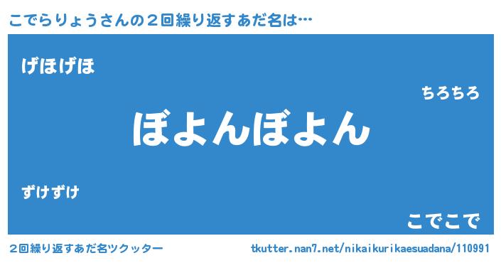 | ヘコむあだ名 | 『こでらりょう(苦笑)』『こでにゅー』 |