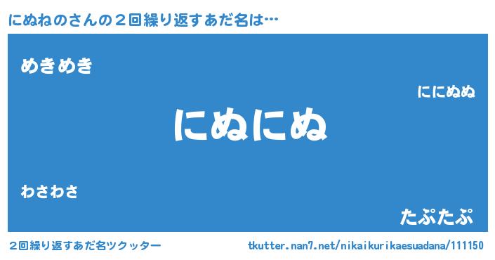 | ポケモン風あだ名 | 『ニヌチュウ』『ニヌセウス』 |