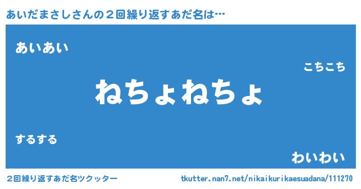 | ピコ太郎風あだ名 | 『アイ二郎』『アコ五郎』『ピコア郎』 |