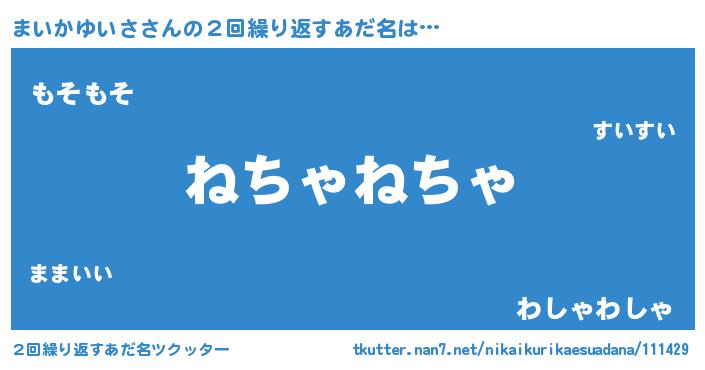 | 男性向けラノベタイトル風あだ名 | 『まいかゆいさの嫁は女の子じゃないと思った?』 |