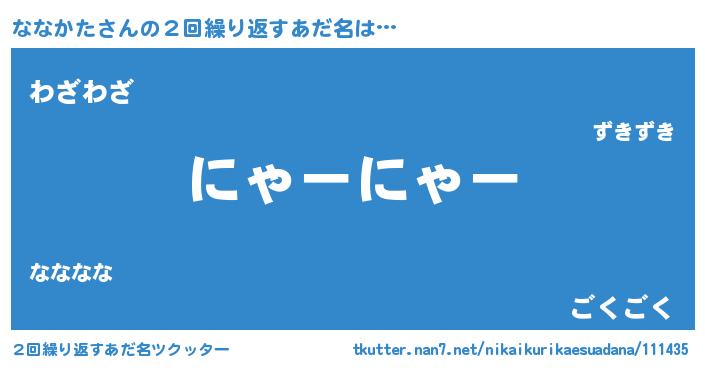 | 男性向けラノベタイトル風あだ名 | 『ななかたの嫁は女の子じゃないと思った?』 |