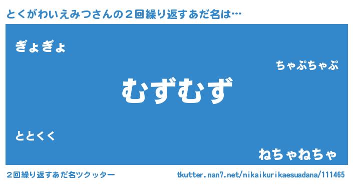 | 可愛いあだ名 | 『とくうちぇる』『とくがわいえみつママ』 |