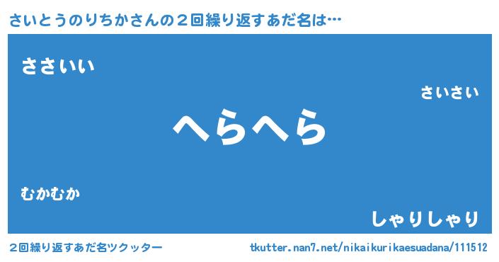 | 胡散臭い通販商品みたいなあだ名 | 『お金では代えられないイリジウム磁石…その名も「さいとうのりちか」』 |