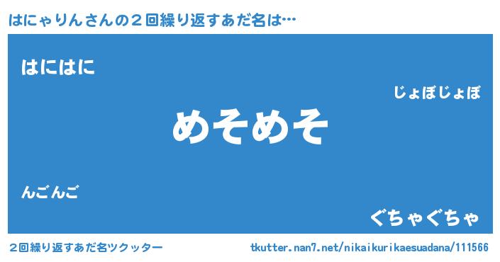 | 意味不明あだ名 | 『自称はにゃりん』『ペロリンはにゃりん』 |