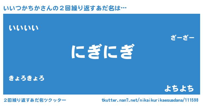 | 欧米人風あだ名 | 『ウサインいいつかちか』 |