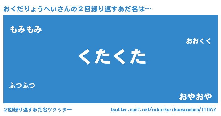 | 男性向けラノベタイトル風あだ名 | 『おくだりょうへいという概念が存在しない退屈な世界 』 |