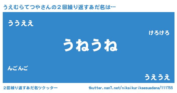 | ポケモン風あだ名 | 『ヒウエムラテツヤ』『ウエムダネ』 |