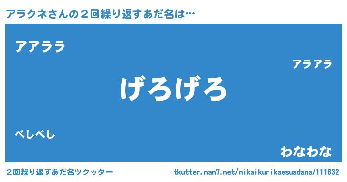 | 意味不明あだ名 | 『永久保存アラクネ』『ニラ科アラクネ属』 |