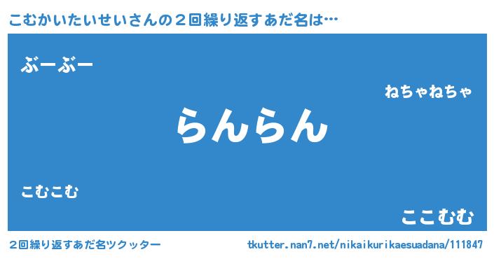 | 欧米人風あだ名 | 『トリンドルこむかいたいせい』 |