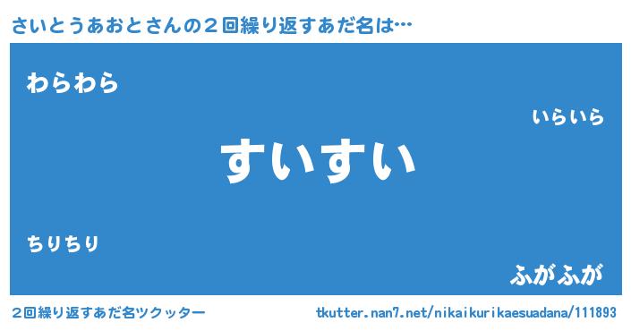| 意味不明あだ名 | 『住所不定無職さいとうあおと(11歳)』 |
