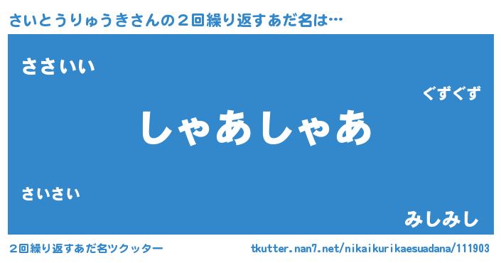 | 欧米人風あだ名 | 『アンジェラ・さいとうりゅうき』 |