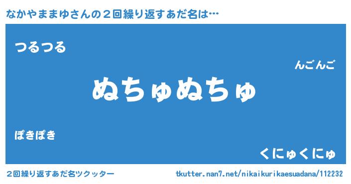 | 男性向けラノベタイトル風あだ名 | 『なかやままゆの嫁は女の子じゃないと思った?』 |