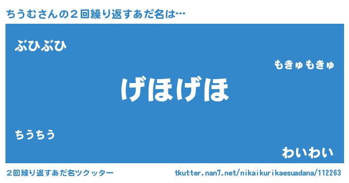 | ヘコむあだ名 | 『ちうむ(爆)』『ちうにゅー』 |