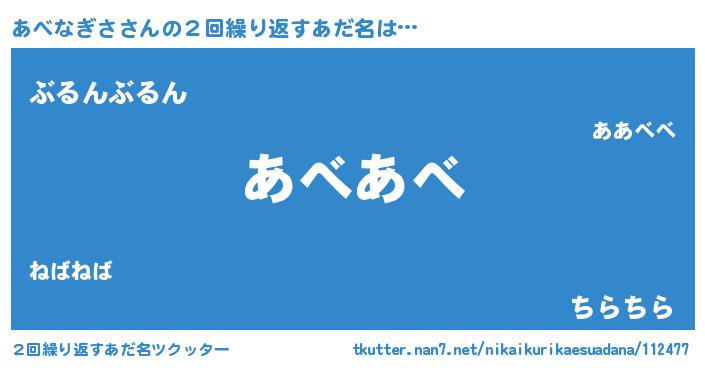 | 意味不明あだ名 | 『ペロリンあべなぎさ』『自称あべなぎさ』 |