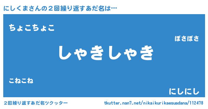 | 意味不明あだ名 | 『住所不定無職にしくま(91歳)』 |