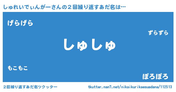 | ヘコむあだ名 | 『しゅふぇ~』『しゅれいでぃんがー(笑)』 |