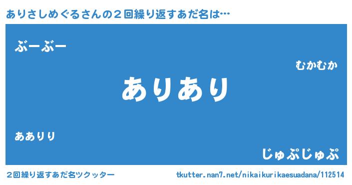 | 意味不明あだ名 | 『ペロリンありさしめぐる』 |
