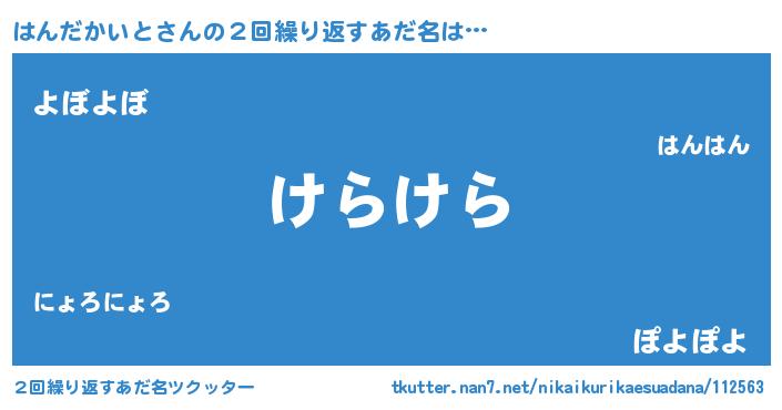 | ヘコむあだ名 | 『はんだかいと(爆)』『はんにゅー』 |