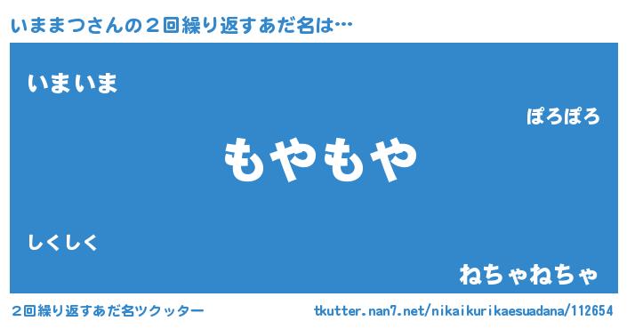 | 男性向けラノベタイトル風あだ名 | 『Re:いままつから始める異世界生活』 |
