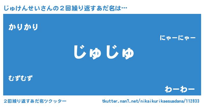 | ヘコむあだ名 | 『じゅにー』『じゅけんせい(小並感)』 |