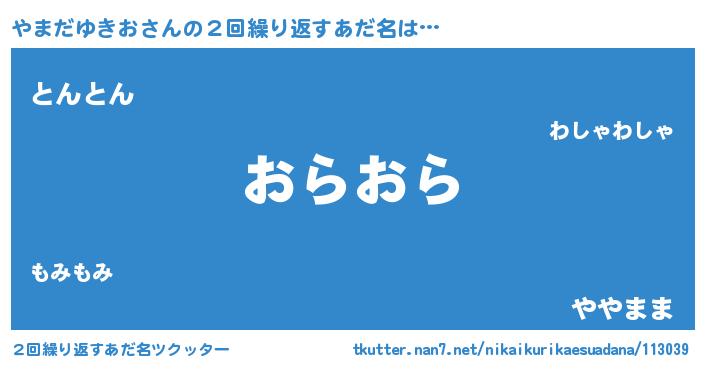 | 欧米人風あだ名 | 『ウサインやまだゆきお』 |