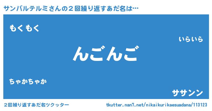 | 欧米人風あだ名 | 『トリンドルサンバルテルミ』 |