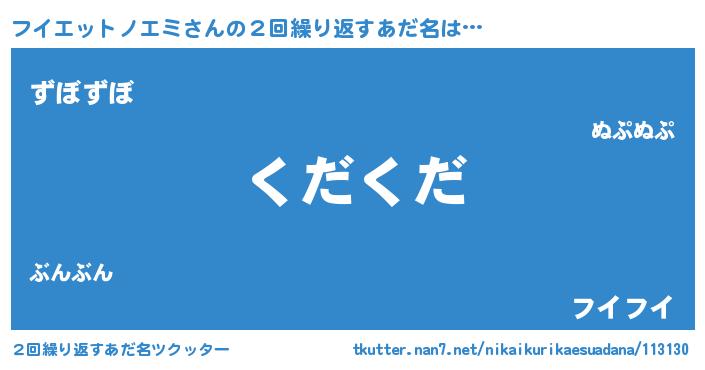 | 男性向けラノベタイトル風あだ名 | 『フイエットノエミという概念が存在しない退屈な世界 』 |