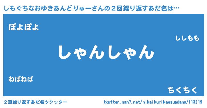 | 意味不明あだ名 | 『住所不定無職しもぐちなおゆきあんどりゅー(50歳)』 |