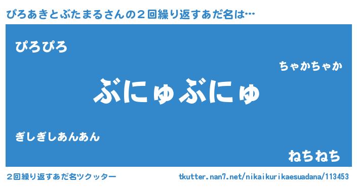 | 男性向けラノベタイトル風あだ名 | 『おまえをオタクにしてやるから、俺をぴろあきとぶたまるにしてくれ! 』 |