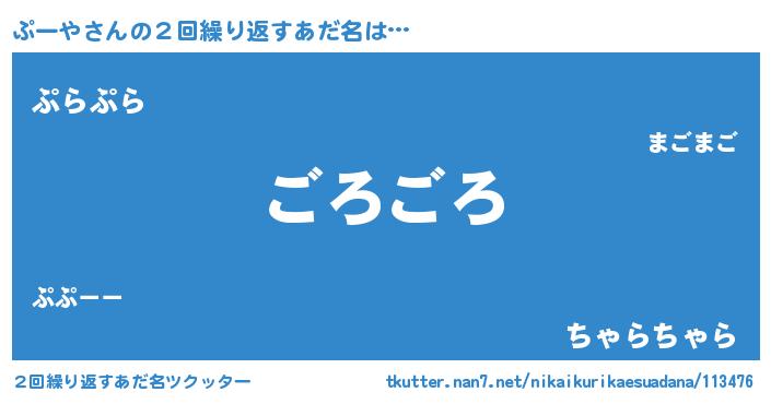 | 意味不明あだ名 | 『永久保存ぷーや』『自称ぷーや』 |