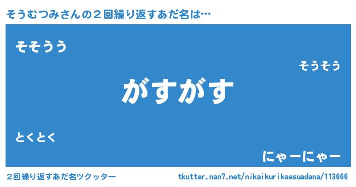 | 意味不明あだ名 | 『永久保存そうむつみ』『自称そうむつみ』 |