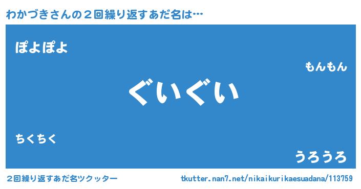 | 意味不明あだ名 | 『永久保存わかづき』『自称わかづき』 |
