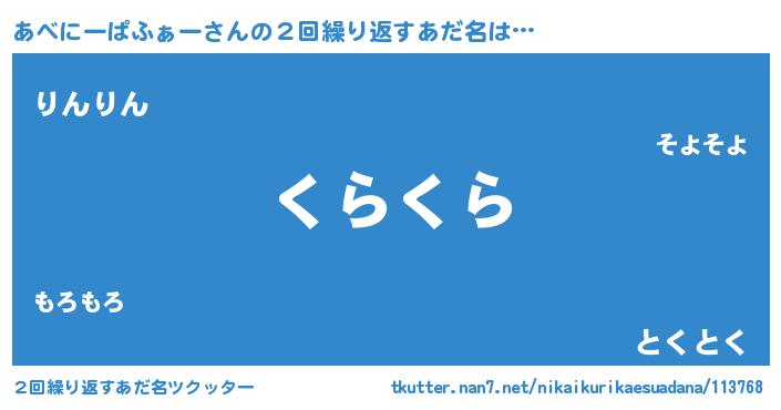 | 意味不明あだ名 | 『永久保存あべにーぱふぁー』 |