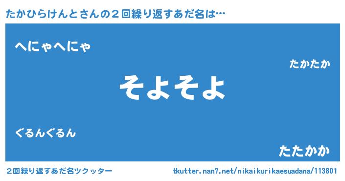 | 意味不明あだ名 | 『住所不定無職たかひらけんと(91歳)』 |