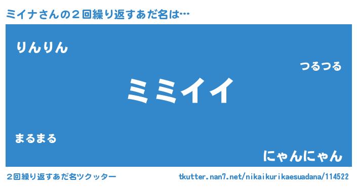 | 欧米人風あだ名 | 『ミイナクリステル』『トリンドルミイナ』 |