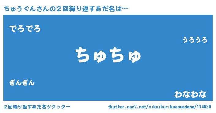 | ヒーロー風カッコイイあだ名 | 『スーパーチュウグン』『幻影騎士チュ』 |