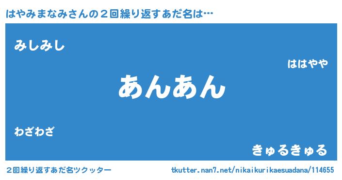| 意味不明あだ名 | 『とにかく怪しいはやみまなみ』 |
