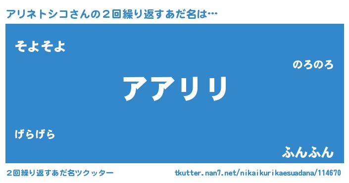 | 女子向けラノベタイトル風あだ名 | 『アリネトシコの婚約者』 |