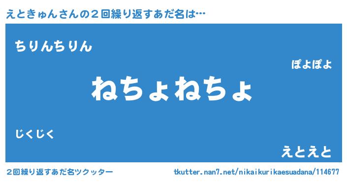 | 男性向けラノベタイトル風あだ名 | 『えときゅんの嫁は女の子じゃないと思った?』 |