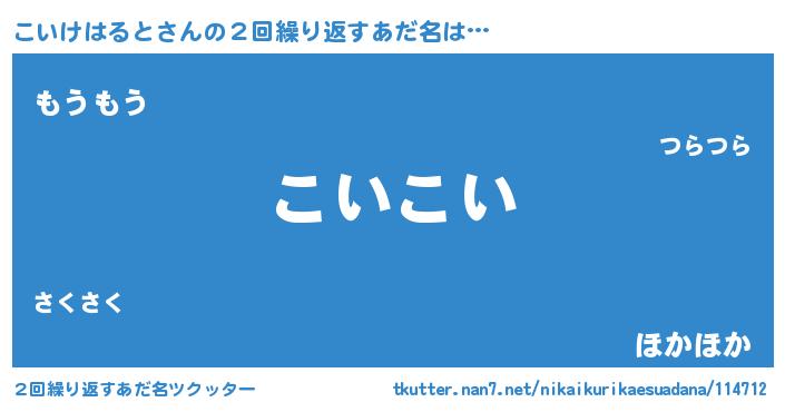 | 男性向けラノベタイトル風あだ名 | 『コイケハルトアートオンライン』 |