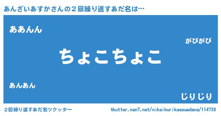 | 意味不明あだ名 | 『あんざいあすかフォーエバー』 |