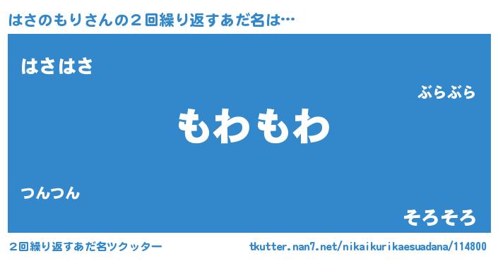 | 男性向けラノベタイトル風あだ名 | 『Re:はさのもりから始める異世界生活』 |