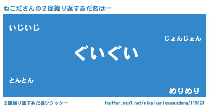 | 欧米人風あだ名 | 『ダルビッシュねこだ』『ウサインねこだ』 |