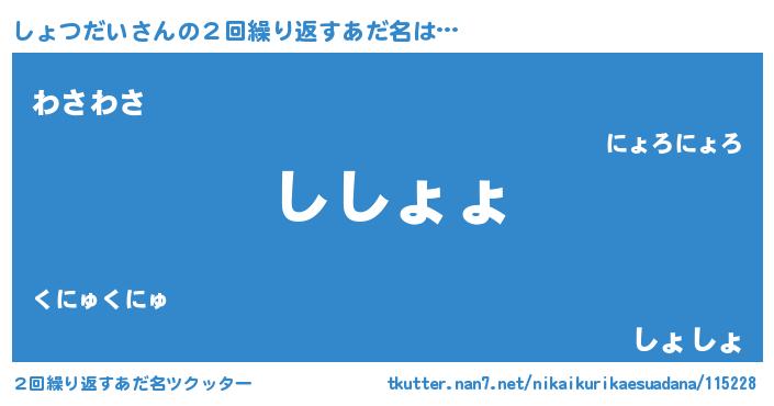 | 意味不明あだ名 | 『しょつだいフォーエバー』 |