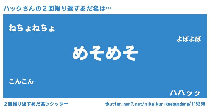 | 意味不明あだ名 | 『自称ハック』『とにかく怪しいハック』 |